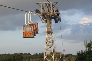 The 618-meter long Monocable Pulsated Ropeway connects Nandankanan Zoo with the State Botanical Garden. It features 12 cabins with six-passenger capacity each and offers panoramic aerial views of Kanjia Lake and the surrounding landscapes.