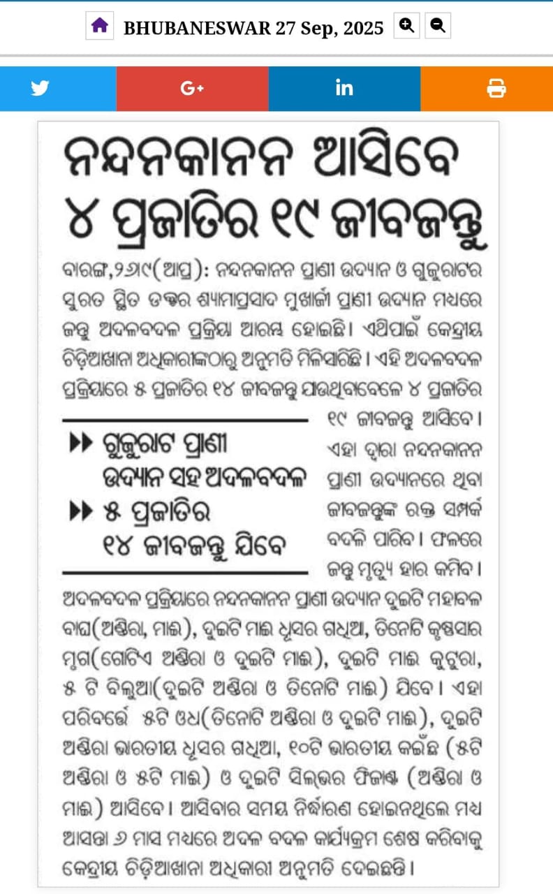 55th Foundation Day of Nandankanan Zoological Park (The Sambad : 30-12-2014)