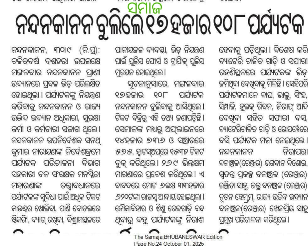 55th Foundation Day of Nandankanan Zoological Park (The Sambad : 30-12-2014)